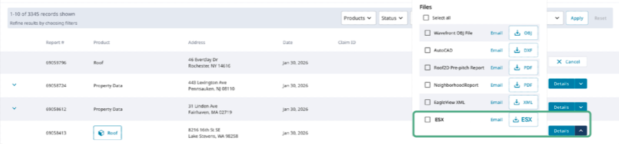 Now, accessing these files will be even easier. Eagleview users will be able to download an ESX file directly to their Eagleview order—eliminating extra steps and making it faster than ever to move from roof data to a complete estimate in Xactimate.